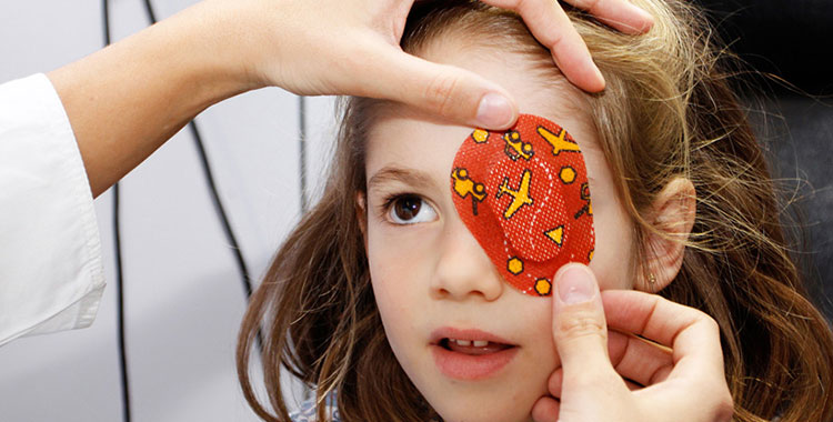 - Oclusión del ojo normal para la estimulación de la visión del ojo perezoso.